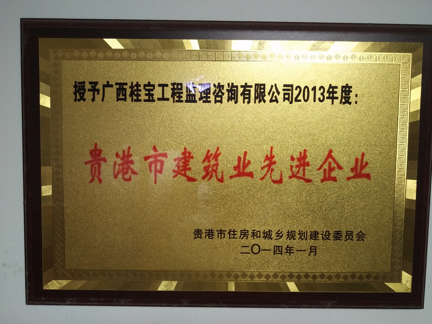 2013年度被授予“贵港市建筑业先进企业”