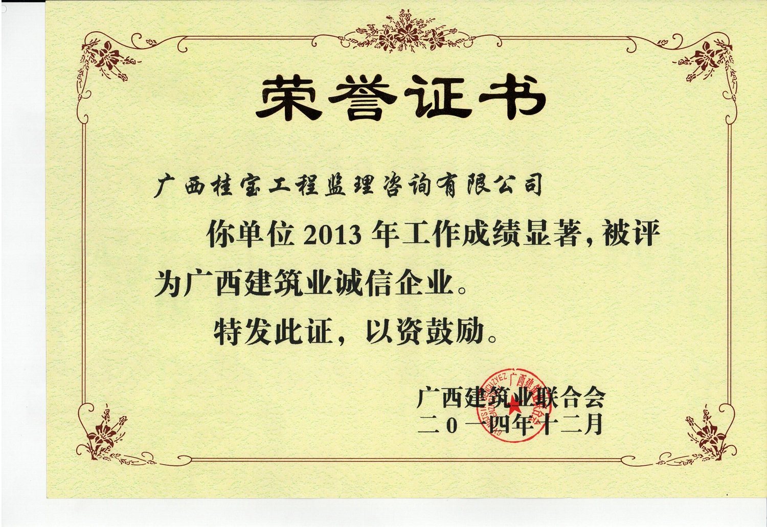 2013年度被评为“广西建筑诚信企业和先进企业”