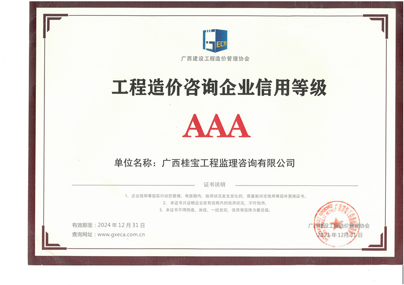 工程造价咨询企业信用等级AAA