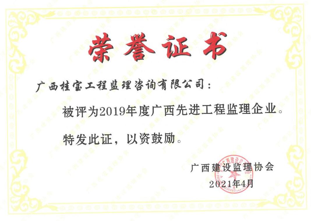 2019年度广西先进工程监理企业