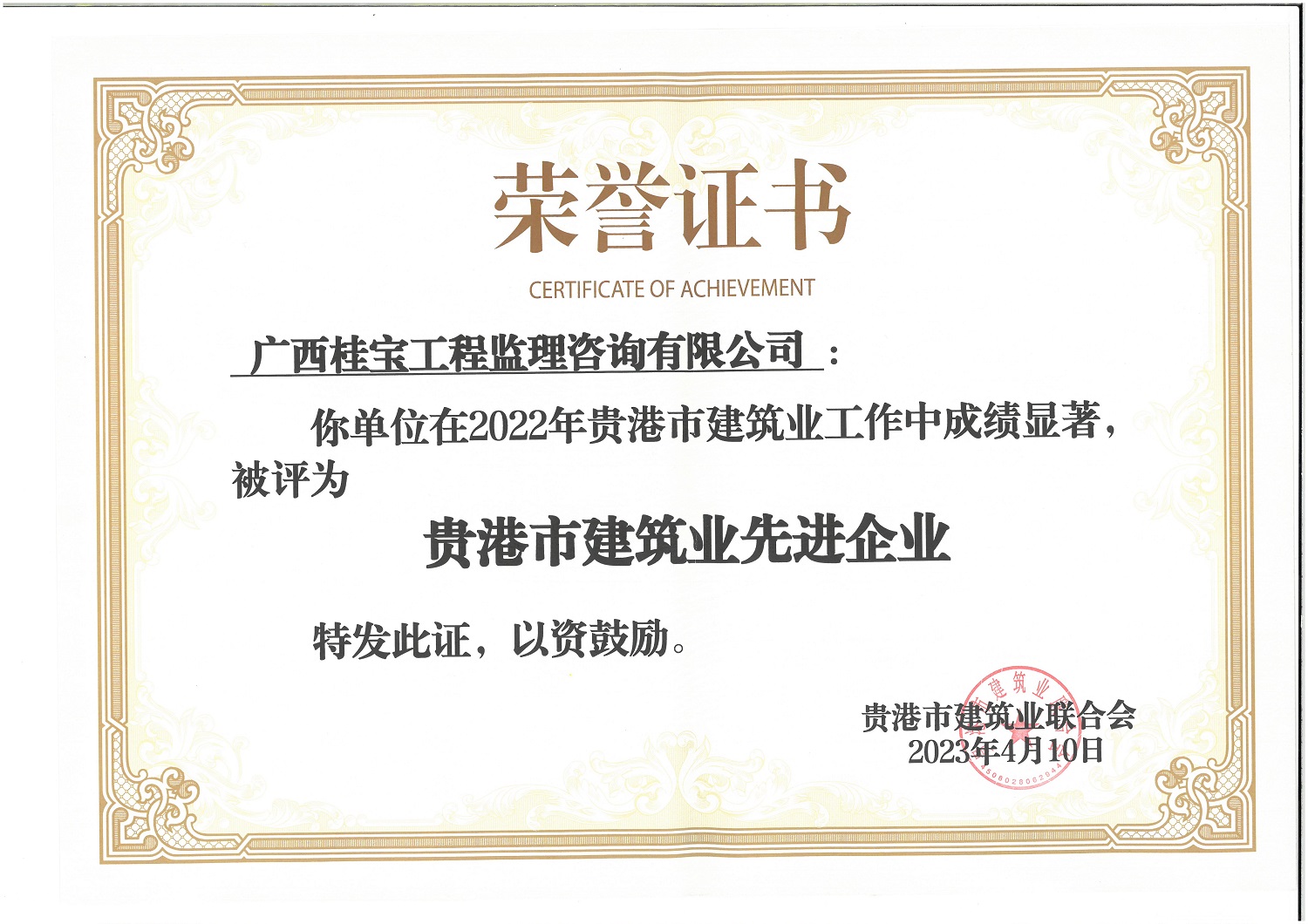2022年贵港市建筑业先进企业