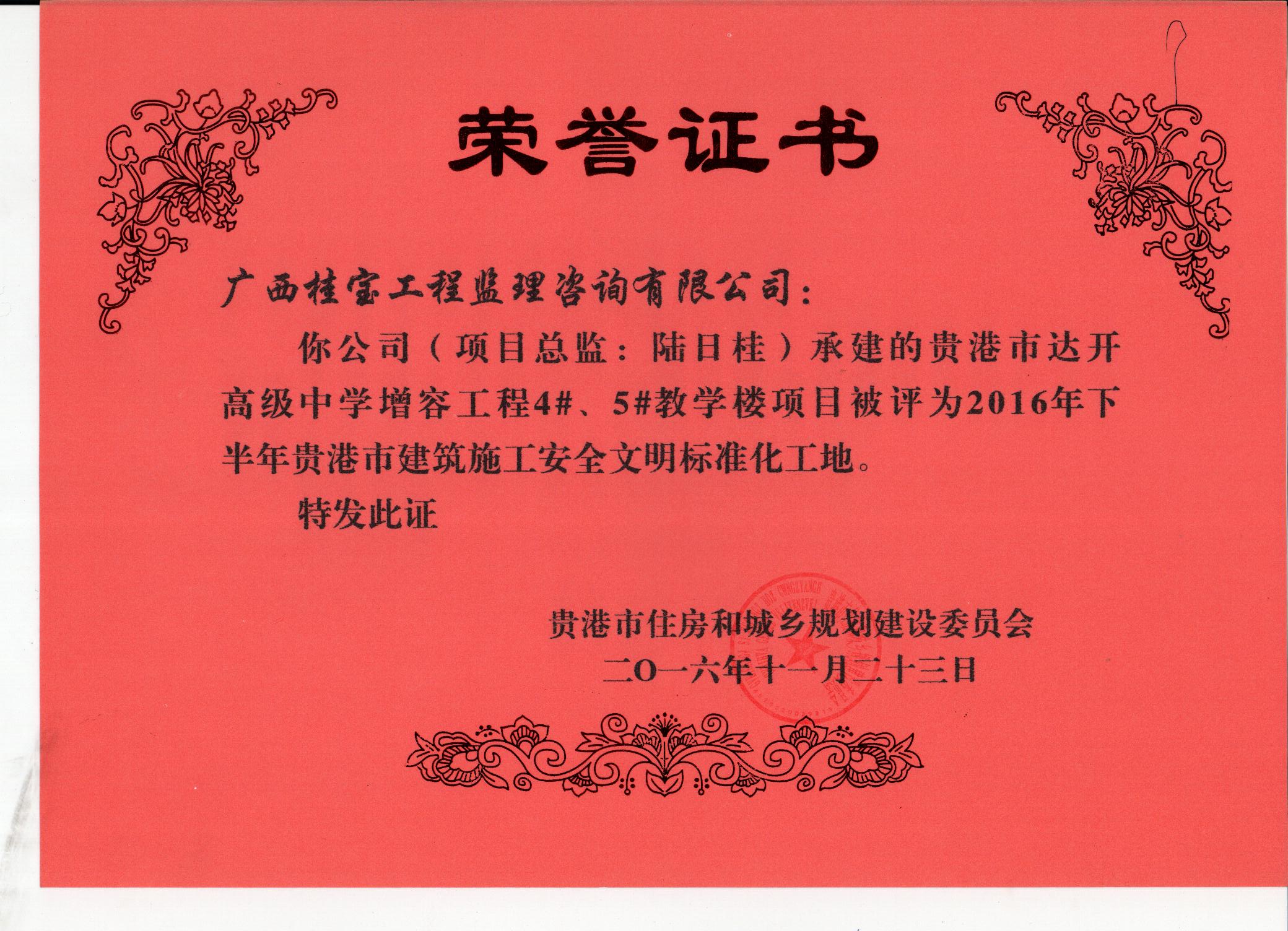 2017年获贵港市优质工程奖