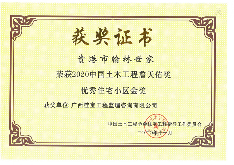 2020年贵港市建设工程“荷城杯”奖(翰林世家)