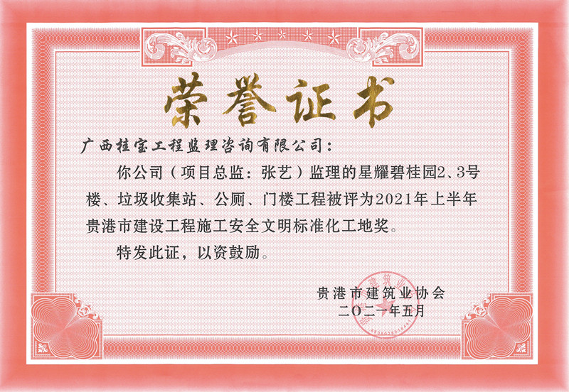 2021年上半年贵港市建设工程施工安全文明标准化工地奖(星耀碧桂园)