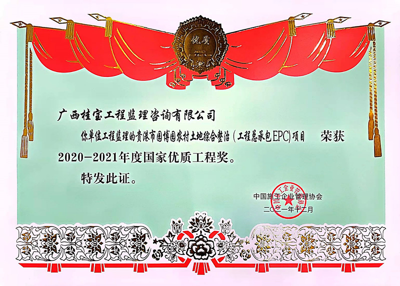 贵港市园博园农村土地综合整治(工程总承包EPC)项目荣获2020-2021年度国家优质工程奖