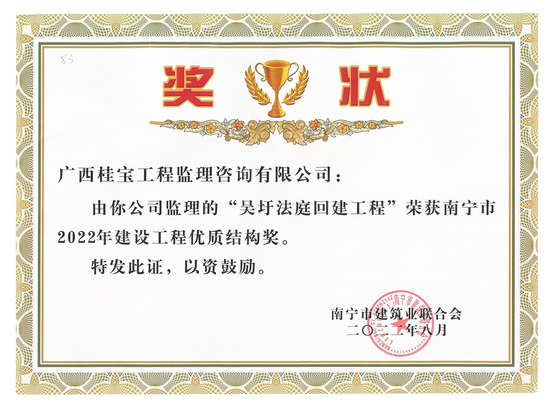 吴圩法庭回建工程荣获南宁市2022年建设工程优质结构奖