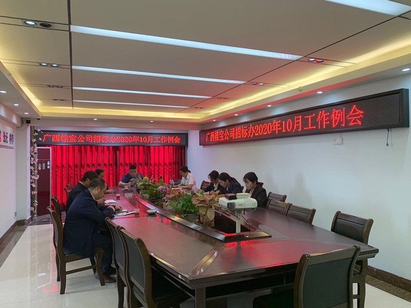 2020年11月6日,广西桂宝公司召开招标办2020年10月工作例会,参会领导有:总经理袁菏、副总经理周总、招标办主任黄燕兰,会议由招标办主任黄燕兰主持。