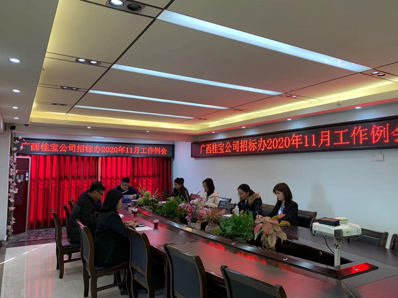 2020年12月4日,广西桂宝公司召开招标办2020年11月工作例会,参会领导有:总经理袁菏、副总经理周总、招标办主任黄燕兰,会议由招标办主任黄燕兰主持。