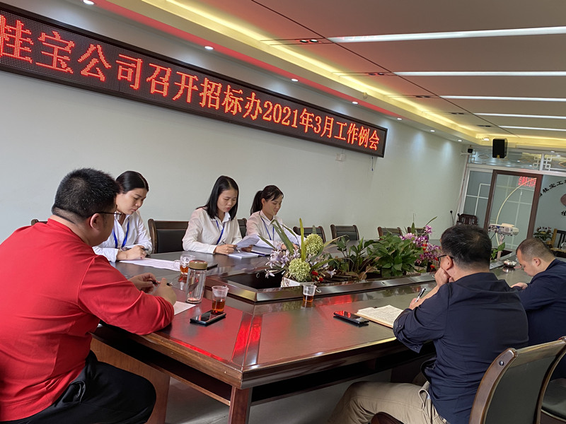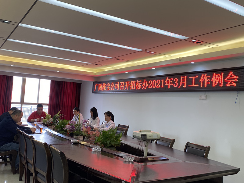2021年4月7日,广西桂宝公司召开招标办2021年3月工作例会。参会领导有:总经理袁菏、副总经理周总、招标办主任黄燕兰,会议由招标办主任黄燕兰主持。