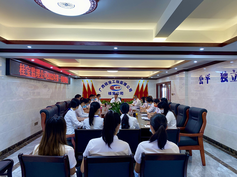 2022年4月11日,公司召开桂宝监理公司2022年第一季度例会,会议由袁董事长主持,办公室全体人员参会,现将会议精神纪要如下: