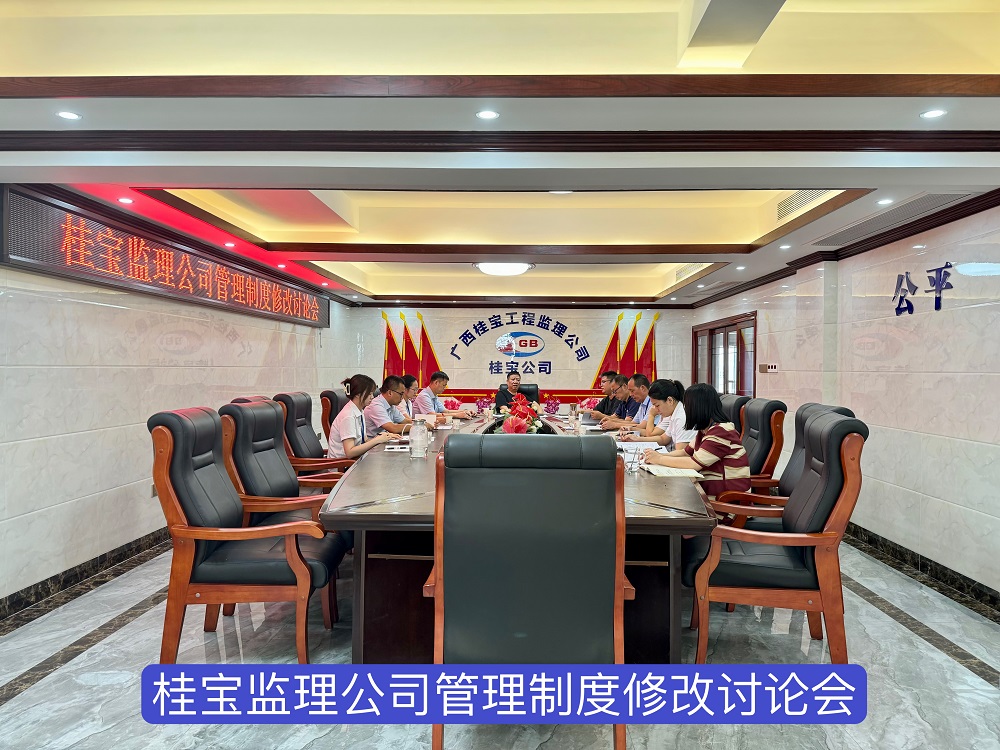 2024年8月5日9时整,桂宝监理公司针对目前公司的经营情况,召开了“桂宝监理公司管理制度修改讨论会议”,该会议由袁忠炳董事长主持,公司管理层及职工代表参会。
