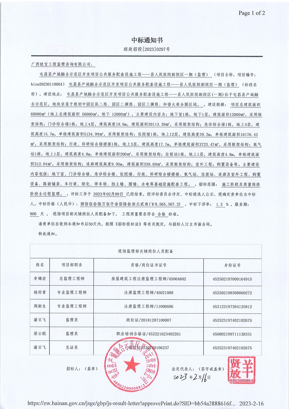 广西贺州平桂区西湾独立矿区移民学校项目施工监理中标公告