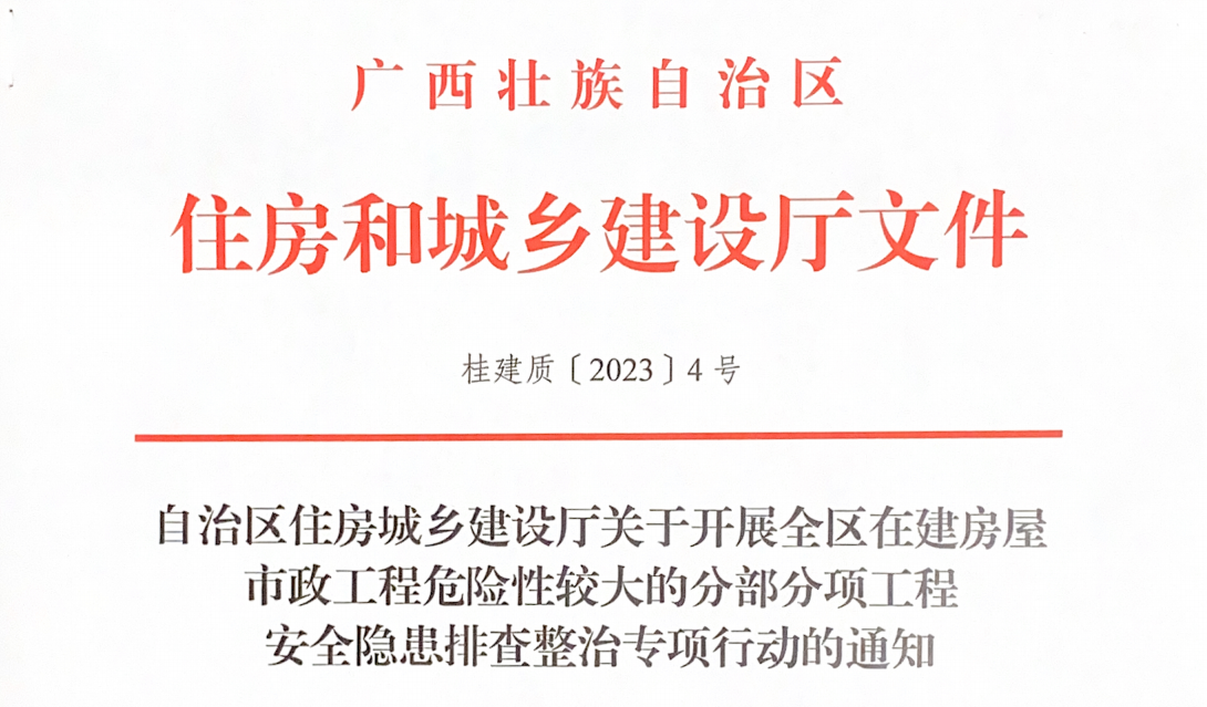 2023年自治区住房城乡建设厅关于开展全区在建房屋市政工程危险性较大的分部分项工程安全隐患排查整治专项行动的通知
